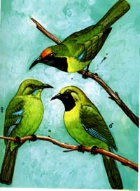 เป็นนกขนาดกลางซึ่งมีขนแทบทั้งตัวสีเขียวเข้มอย่างกับสีของใบไม้ ทุกๆ ชนิดมีขนาดเล็กกว่า นกปรอดสวน นกชนิดนี้ไม่ชอบการทำมาหากินเป็นฝูงน้อยๆราว4-8 ตัว เทียวหาแมลงและหนอนตามใบไม้กิน ลูกไม้เล็กๆ