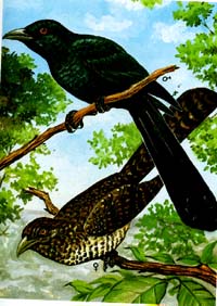 นกดุเหว่าชอบกินลูกไม้ต่างๆ จิ้งจก แมลง กบ เขียด ที่มันพอจะจับกินได้ |