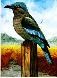 ชนิดนี้ที่ขอบปีกเป็นสีฟ้า ตัวผู้ใต้คอเป็นสีดำ